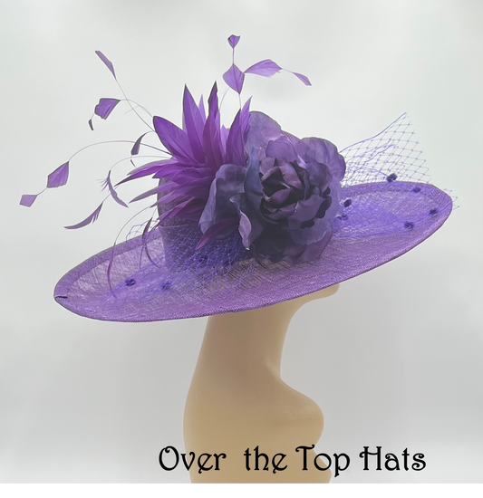 Stunning Purple Sinamay Hat with upturned big brim