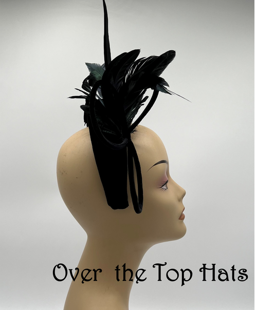 Black Velvet Headband with feathers and velvet loops
