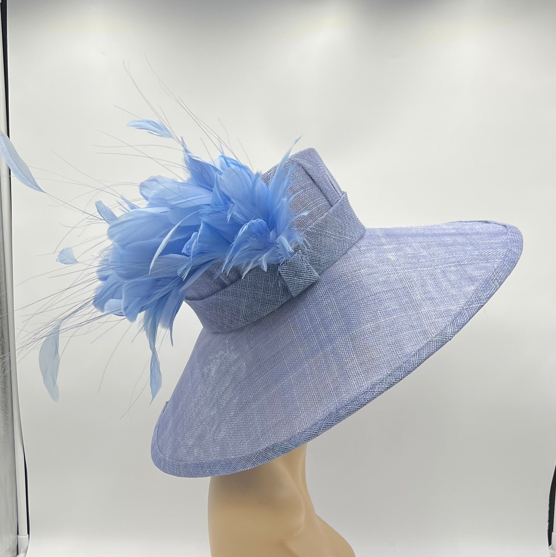 Blue Sinamay Hat with Feathers, great for Derby or Garden Party