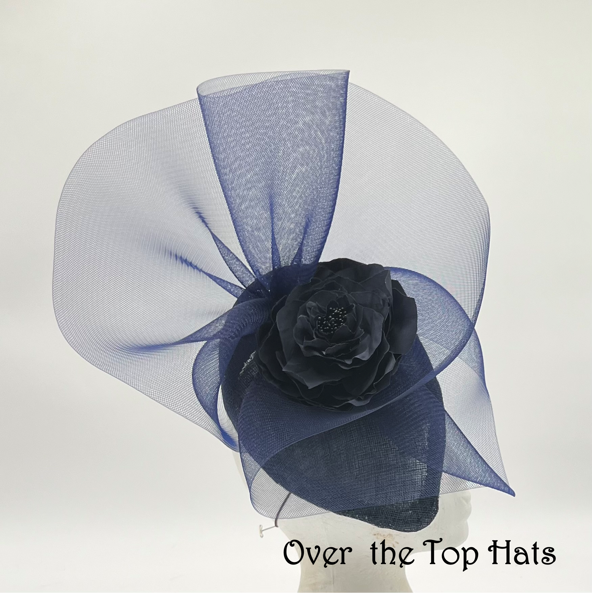 Navy Sinamay Percher with Crinoline and Flowers