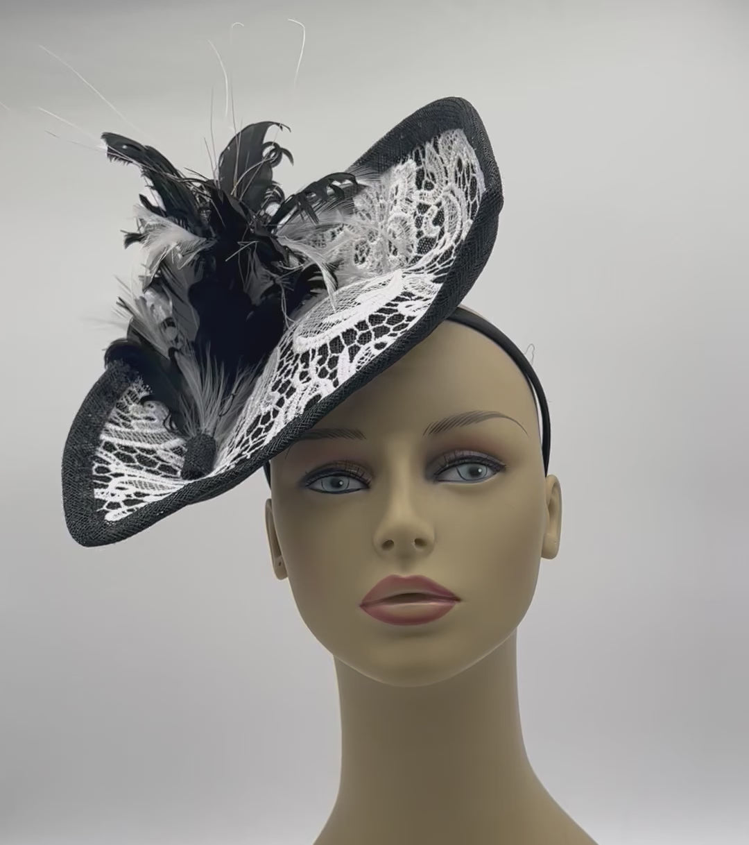 Sinamay and Lace Black and White Saucer, Great for Kentucky Derby, Ascot or Church